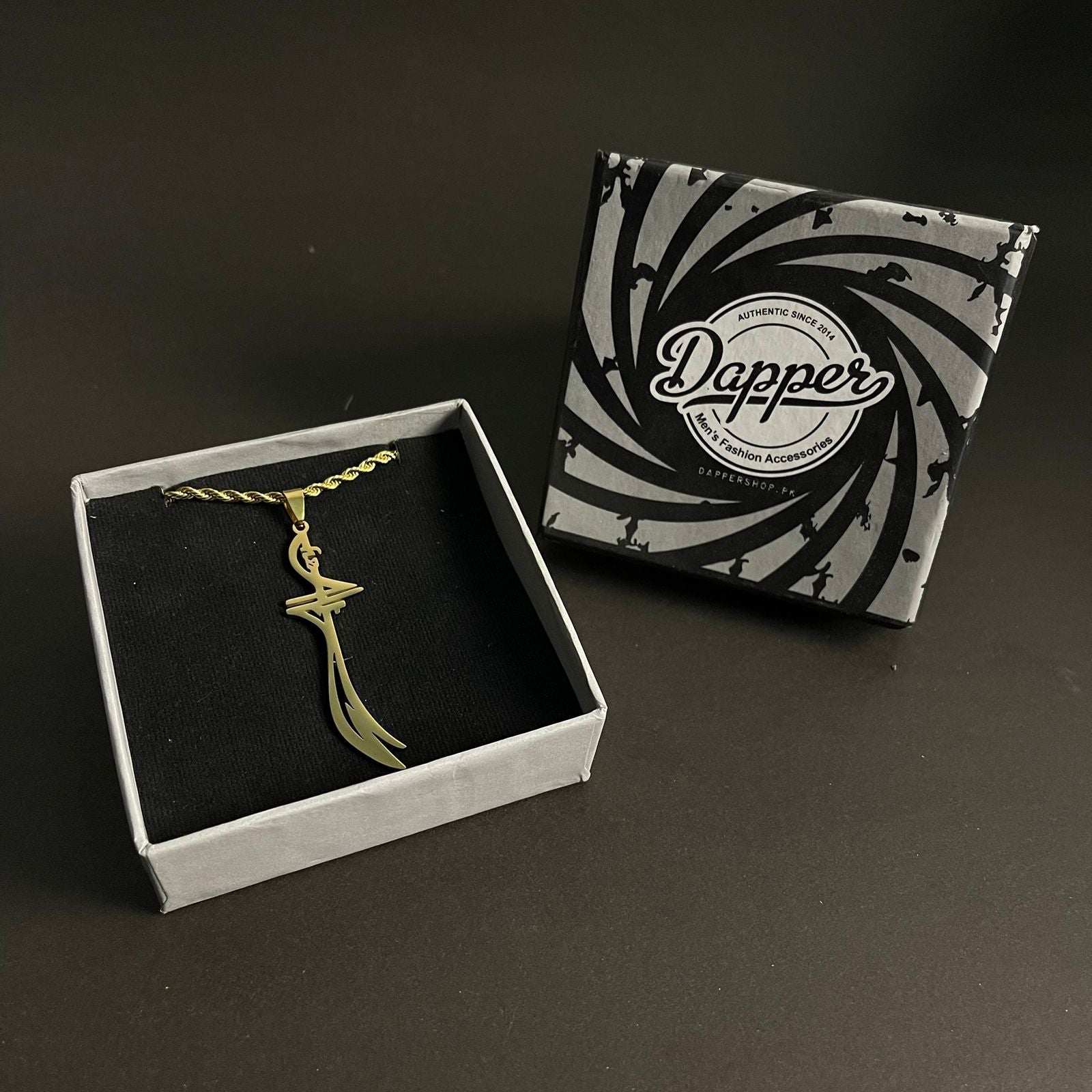 Zulfiqar Sword Hazrat Ali Maula Sword Pendant Necklace Golden